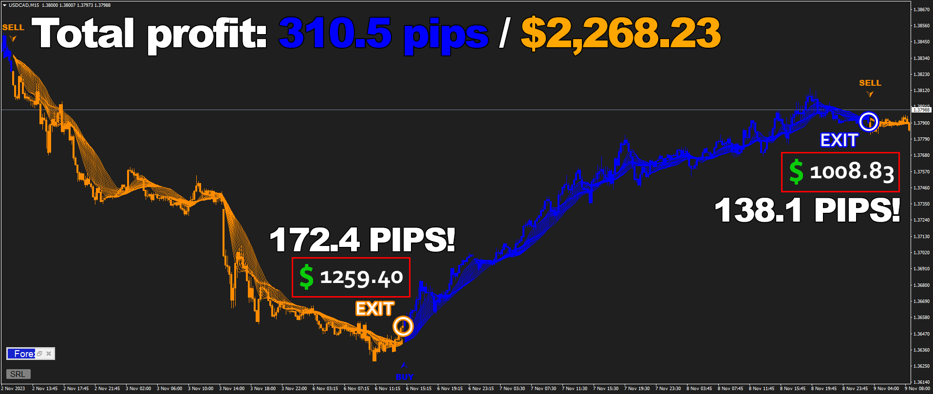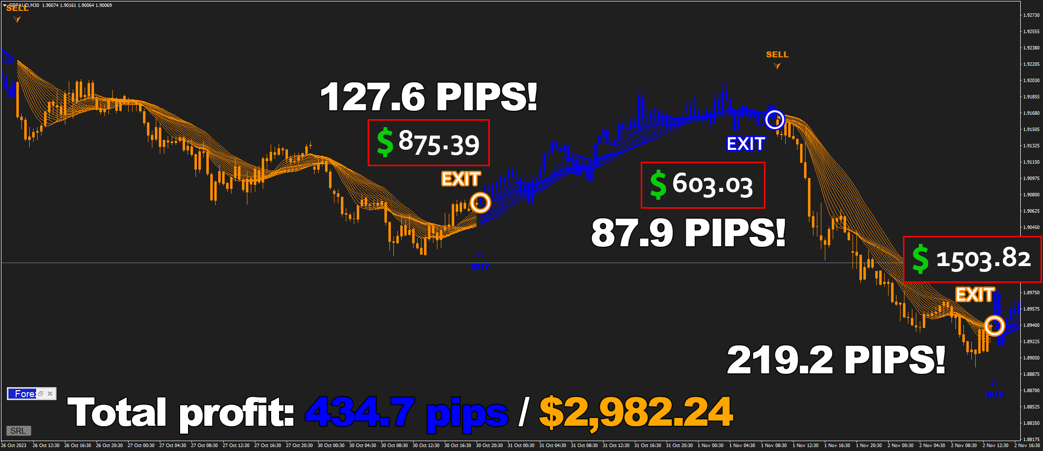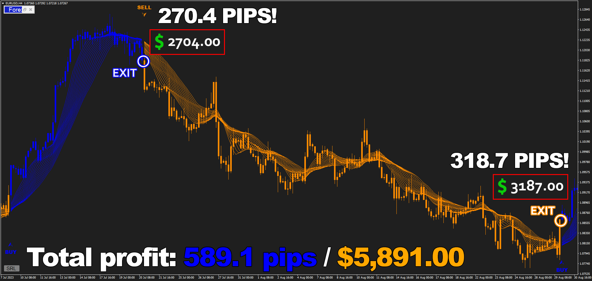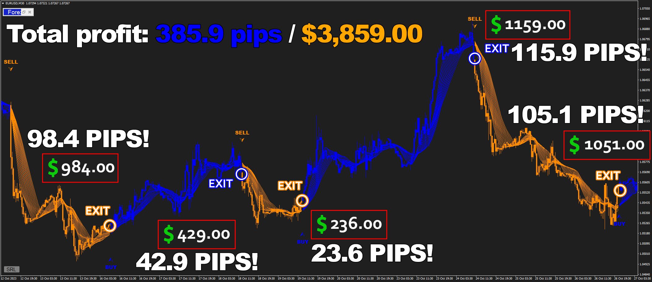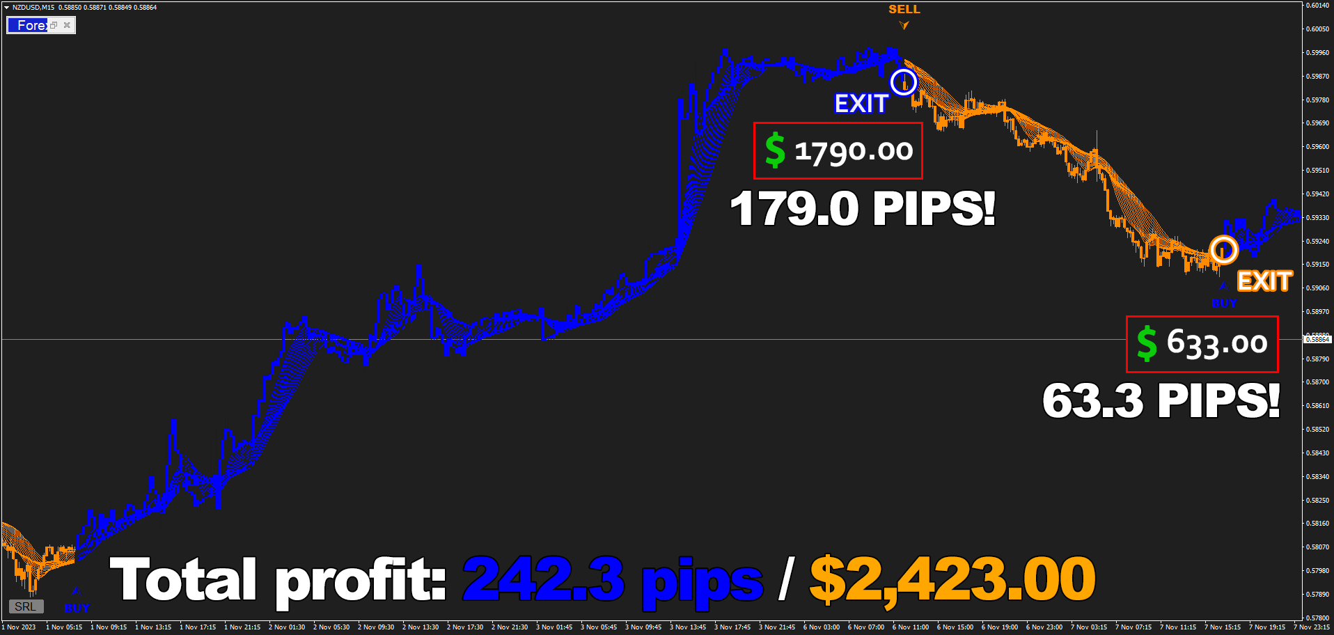Forex Jupiter is incredibly beginner-friendly: It generates clear signals for you to follow, that come with highly accurate exit points and help you earn money - like $4,691.23 on M15 timeframe!