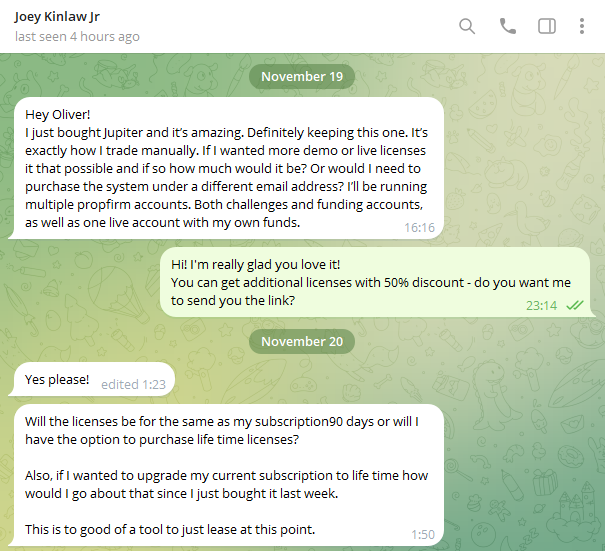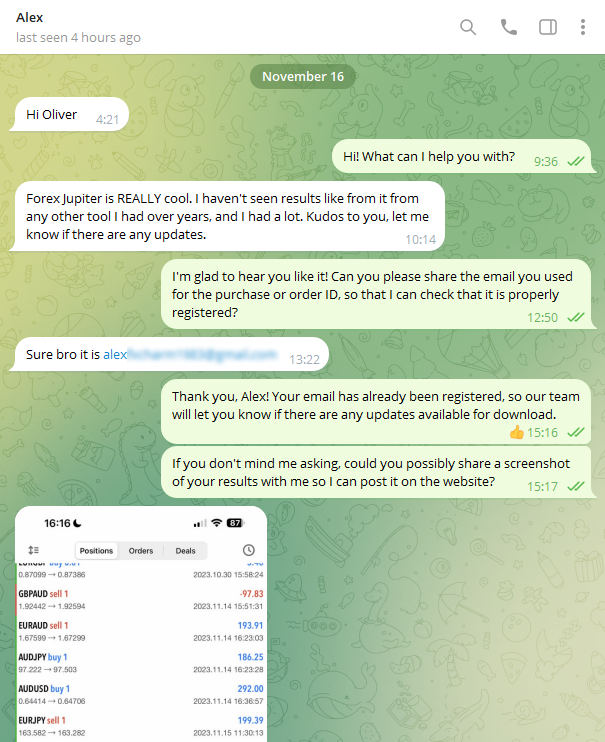 Our testers have made real money with Forex Jupiter and shared their trading histories with us: look at those winning streaks and don't hesitate to get your own Forex Jupiter right now!