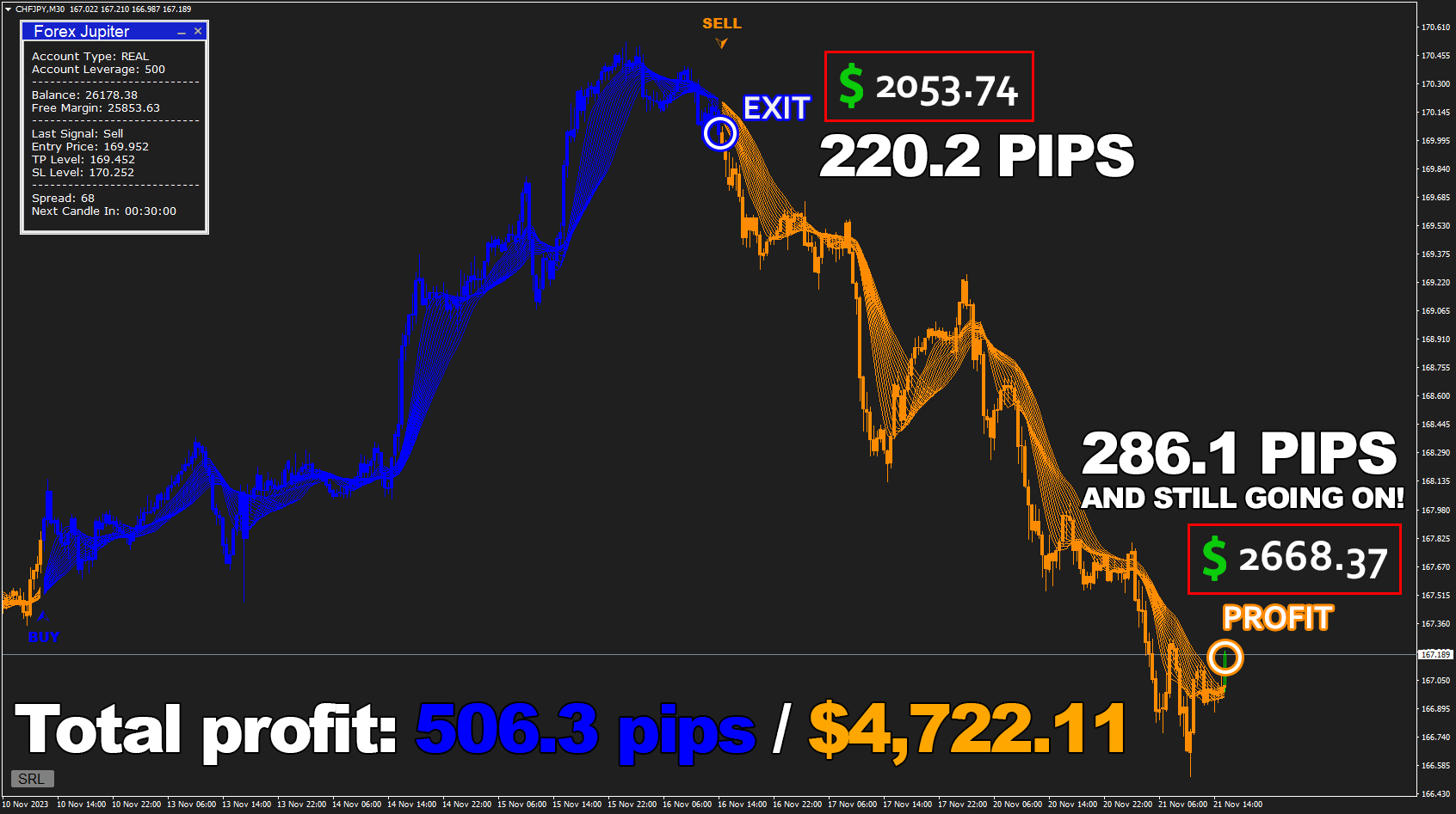 Follow the BUY/SELL signals and get easy profit with Forex Jupiter!