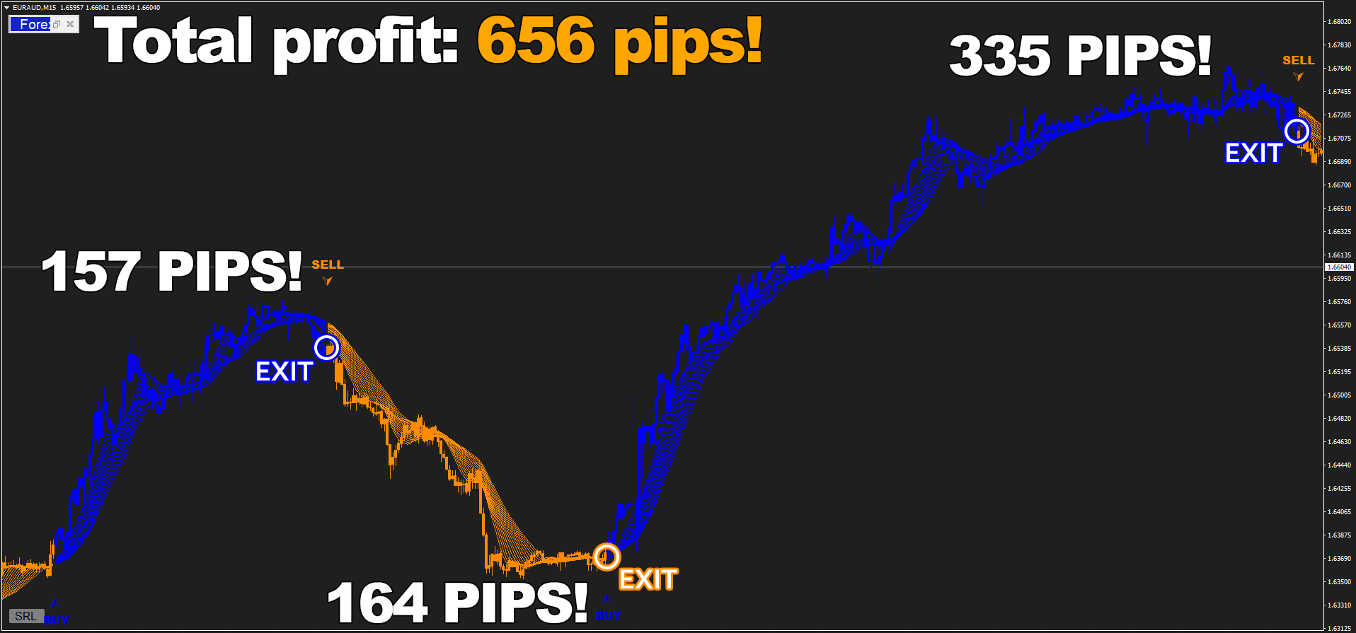 Forex Jupiter is a beast - as simple as that! Have you seen any other tool that is capable of grabbing 656 pips on M15 timeframe with just three price movements like here on Euro / Australian dollar? I don't think so!