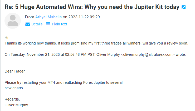 And if for any reason whatsoever you decide that Forex Jupiter is not for you, all you need to do is send us an email - and we will give you your full payment back! No excuses, no delays, no hustle - just the best support in the field!